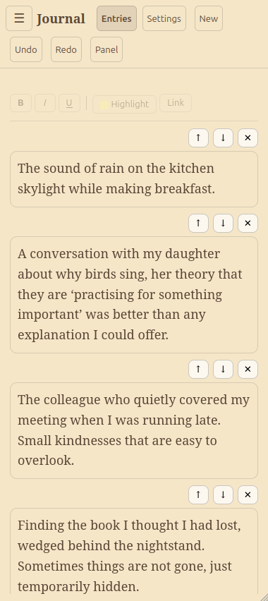 ARK-Journal is for people who want a structured, private writing practice without trusting a third party with their content.